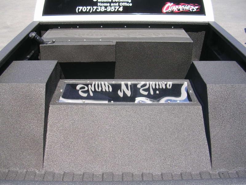 Shaved Roll tall gate, roll pan,Smooth front bumper, panited door handels, Euro Head Lights, Euro coners and Head lamps,Tinted Windows, Bilit Grill, Panited monors, Air horn,LINE-X, Custom built Bed Plexiglass coffin over axle,Fog lights