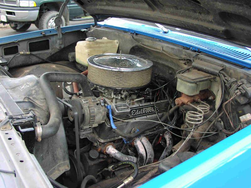 350 thats bored .30 over, lumpy cam, Edelbrock performer intake and carb, black jack headers, Just added an MSD Pro Billet distributor and a chrome Blaster 2 coil, msd 6A ignition box and heli core wires, TH400 tranny