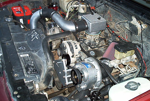 350 Ci 5.7 liter Blown with 8 psi of boost on a Procharger kit.