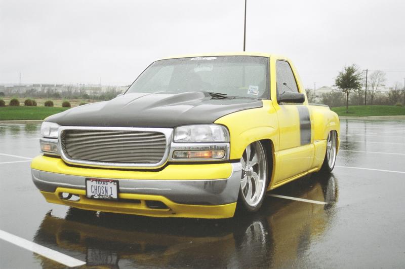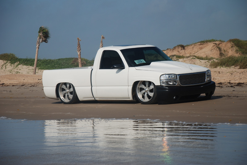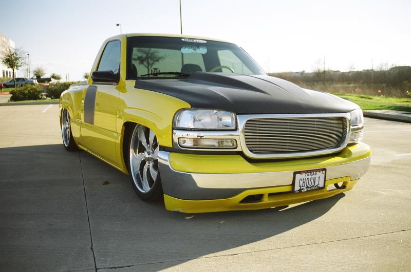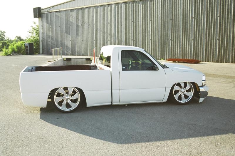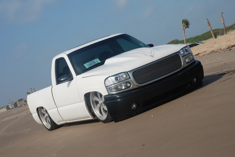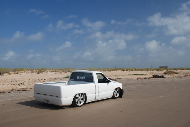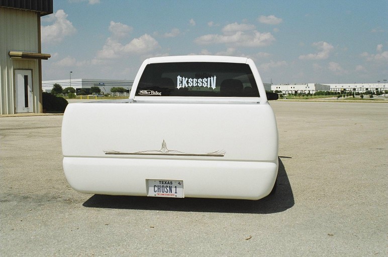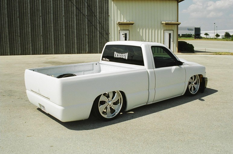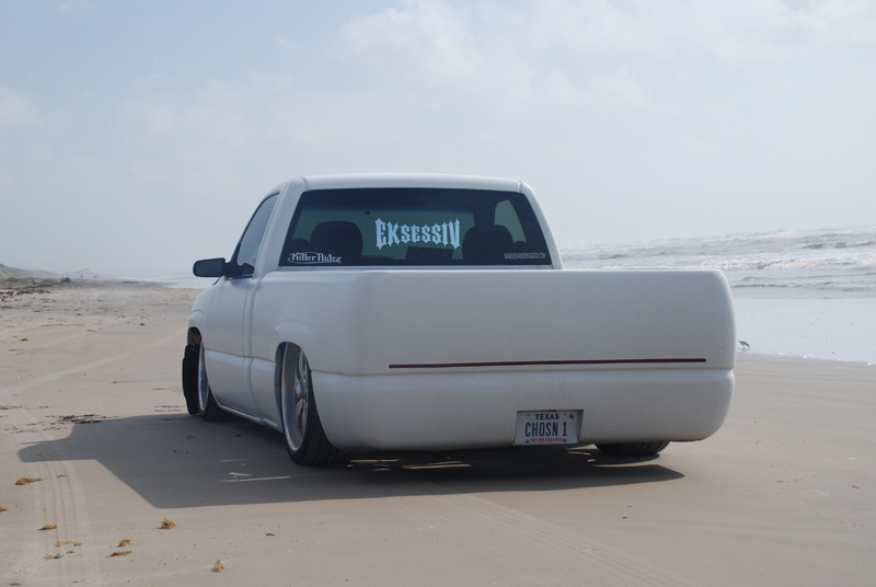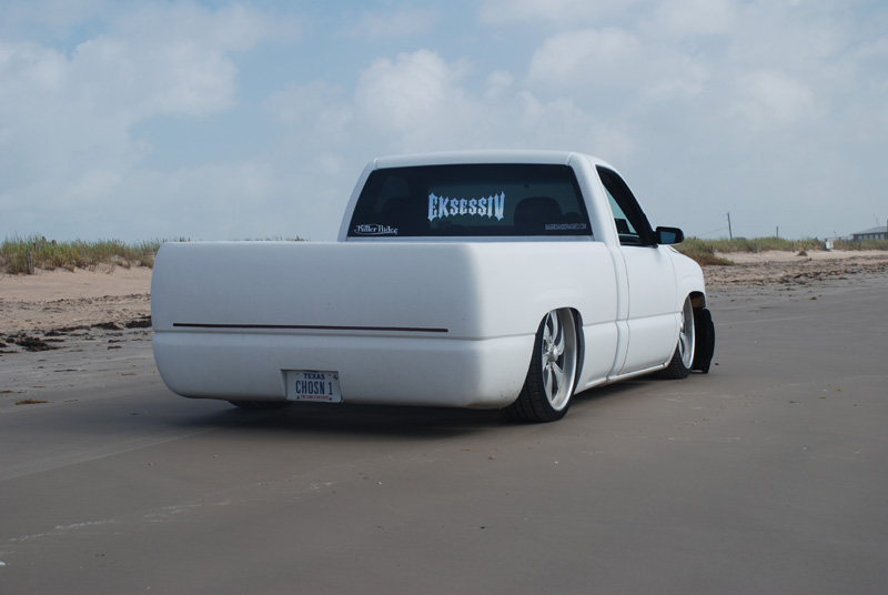 Switched over to a fleetside and shaved stake holes, gas door, taillights and full skin combo. 62" Hitech led, SS mirrors, Goodmark hood, Denali front and primered white. All work done by Killer Ridez