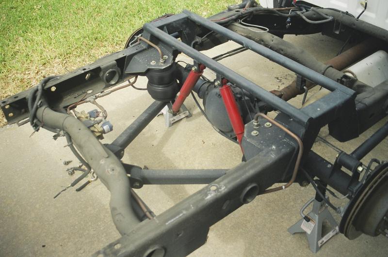 Custom triangulated 4 link, slam bags, 1/2" GC valves and copper lines. Belltech 2" spindles. All work done by Rocky at Fresh Rydes