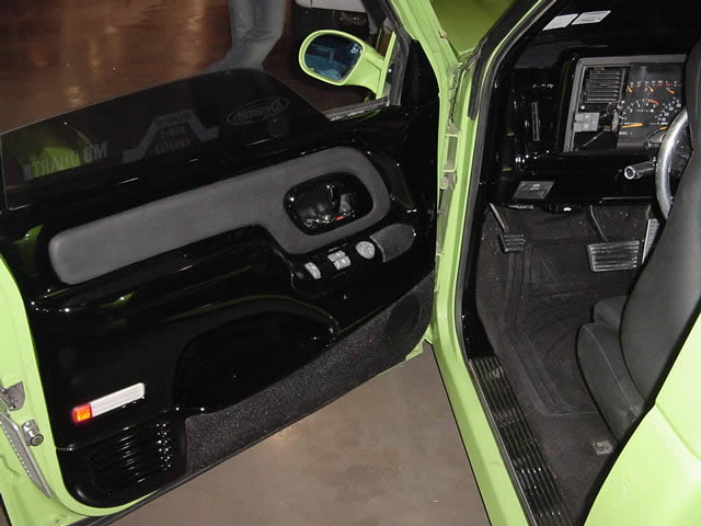 shaved (door handles, antenna, gas door, gate handle, rear steps, bed seam) 30" led in cab, 88 sedan deville lights, escalade front clip, 2000 GMC bumper, A.R.E bedcover, hand made smooth roll pan