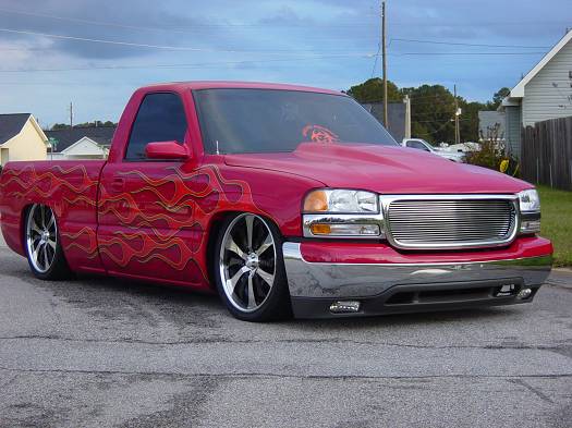 grant kustoms roll pan, shaved tails and gate, 06 bumper and grille,flames by kevin williams