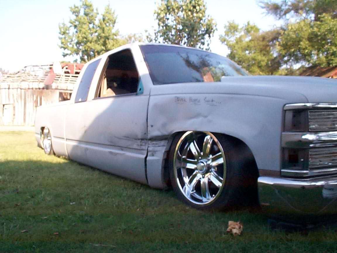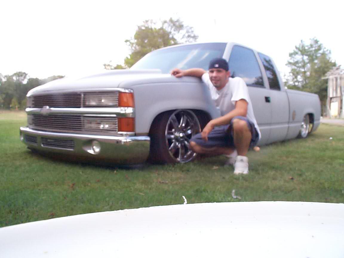 shaved: handles, tailgate, antenna, wiper squirters, cab seams, tailgate, w/ box, bed post holes, 3rd brake light, emblems, molding, and those little rubber things on the window sill. Roll pan, smooth billet front bumper w/ split billet, all euro lights, phantom grill, cowl hood, BIG IG logo on back....