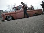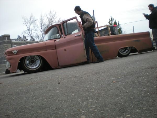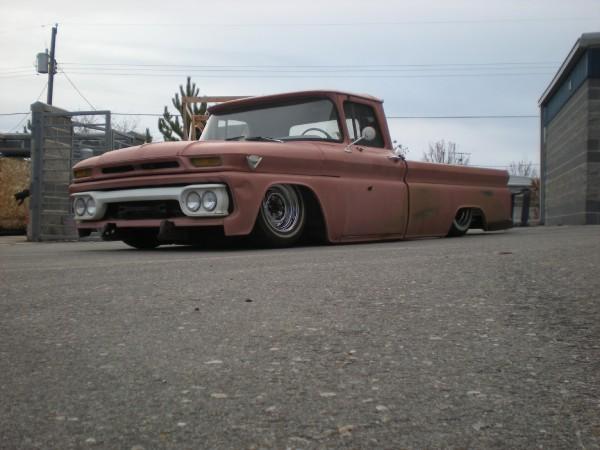 Front: Fabricated crossmember, tubular upper A-arms, dropped lower A-arms, Firestone 'bags, 3-inch frame Z. Rear: 2x3 back half, two link with telescoping wishbone, Firestone bags on bars.