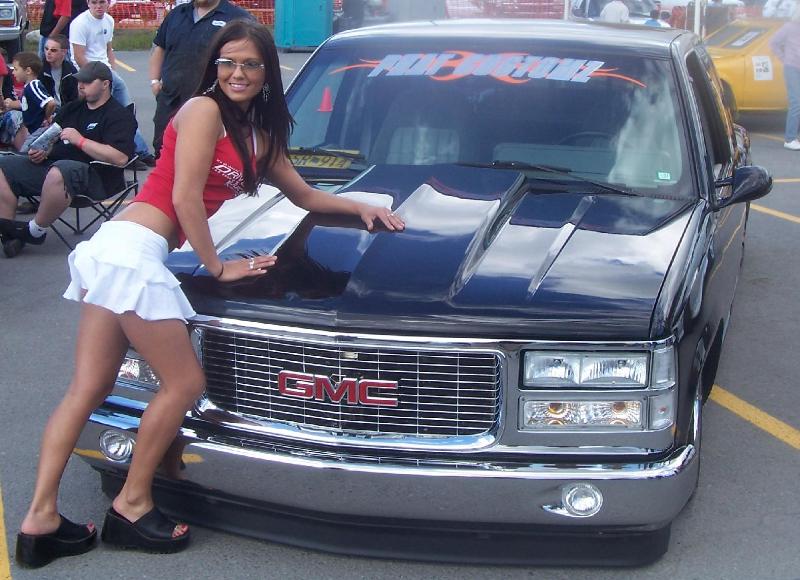 doors & tailgate handles shaved, drip rails on roof and back of cab shaved, frenched in fiberglass roll pan, FBI LED third brake ligt custom frenched into top of tailgate.....black with heavy chrome flake paint