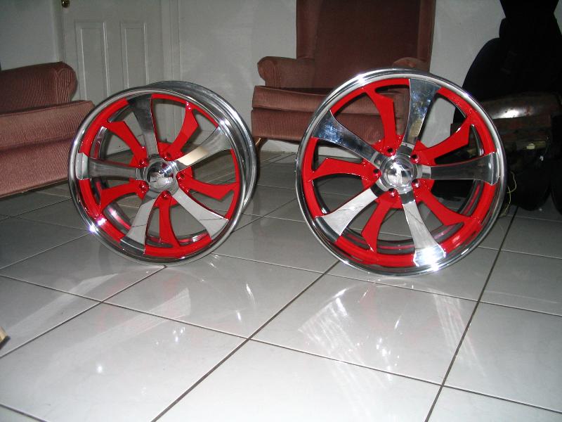 Red Bonspeed Lagunas. FRONT: 20x 8.5" on 245/35 20's. REAR: 22x10" on 265/35 22's.