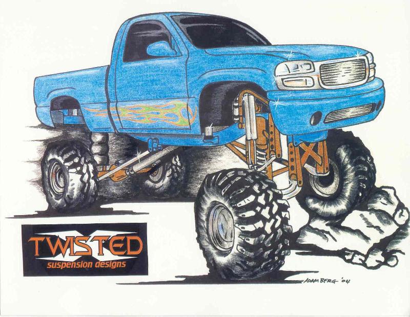 30" Twisted Suspensions Lift Kit (4) Resovored Shockes in the rear, (2) Resovored Shocks on Each Side in the Front, Powdercoated Same Color as Body, and lots of CHROME, Rear 4-Link with Bags 3/4" Valves and Line, Aluminum Fuel Cell