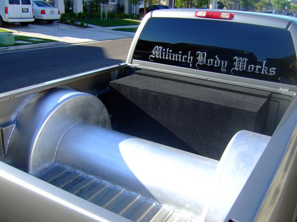 escalade handles, molded rollpan, shaved tailgate, 04 chevy tail lights, tinted windows, billet grill