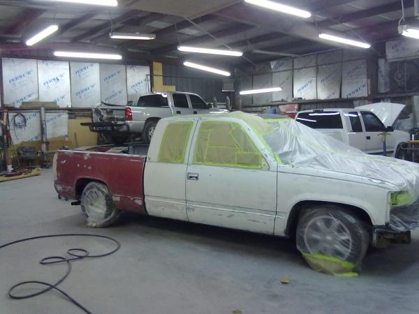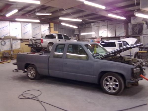 dark gray primer,shaved tail lights,led bar, shaved roll pan, cowl hood, billet grill,black halo head lights,shaved 3rd break light