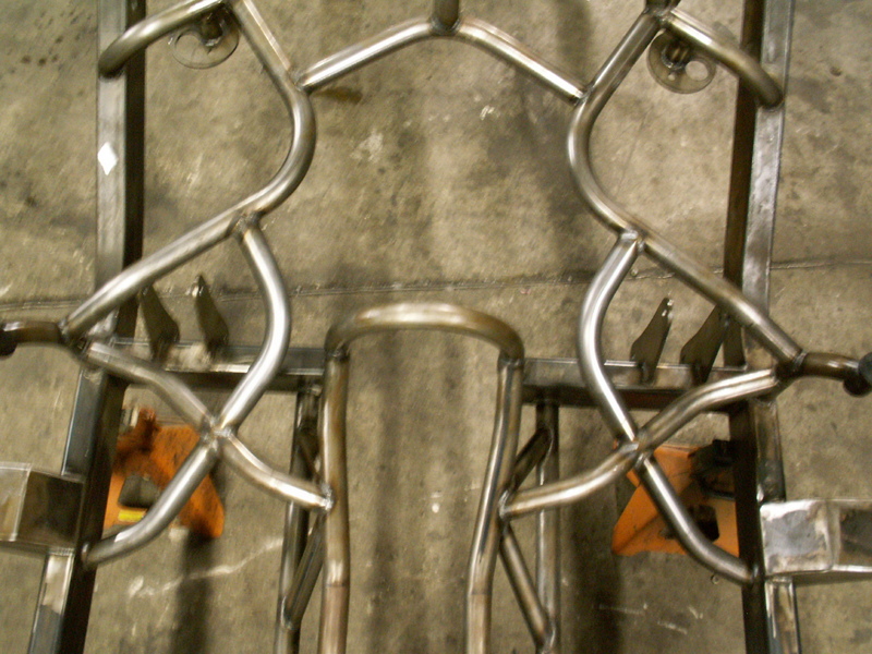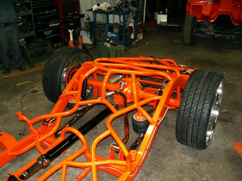 firewall back mandrel bent chassis, custom tubing, powdercoated, custom tri link by Draggers Inc in Fresno