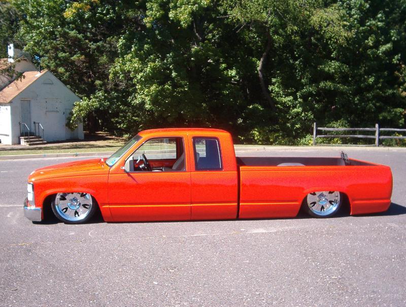 ppg hugger orange,train horns,cali combo,caddy tails,sheet metal bed,notch cover,radious bed corners,shaved pockets,mirrors,pissers.