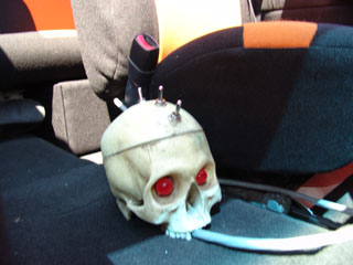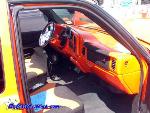 New interior half-way installed, fiberglassed and painted door panels, painted dash, black tweed headliner, a-pillars, and orange and black tweed seats, nu image flamed gauges, trenz billet pedals, B.A.D. inferno steering wheel w/ skull horn button, shaved all pockets off all door panels, not completed center console, and back door panels