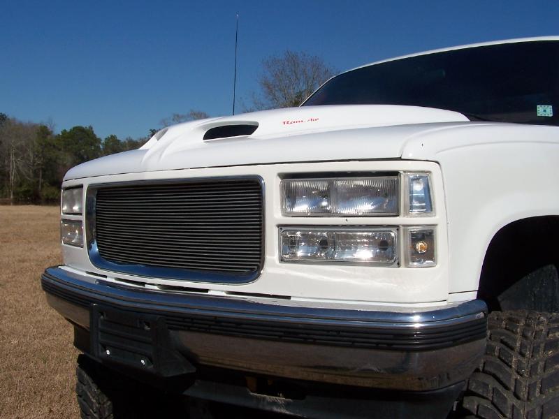 Ram Air Hood, Clear lenses, Carbon Fiber tailights, Billet Grille, Chrome Nerf Bars, The Usual 4x4 Shit