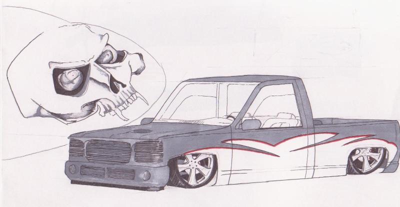 shaved door handles and tailgate handle, frenched antenna, cateye grill, teardrop bumper, welded in roll pan sprayed with HOK Orion Silver