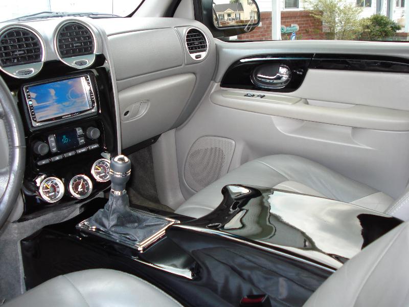 gray two tone leather, fiberglass console, billet spec. steering wheel, teardrop tubs, screens in headrest and dounle din in dash