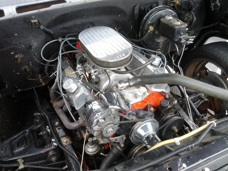 350 with a little billet and chrome dress up stuff.. Billet valve covers and air cleaner. Misc Chrome dress up stuff