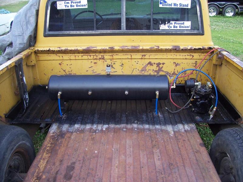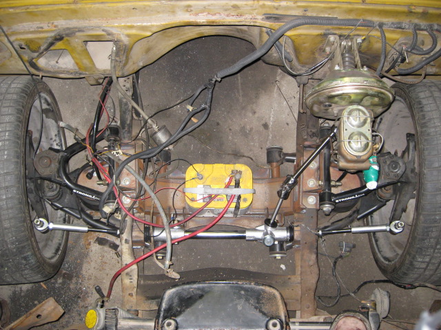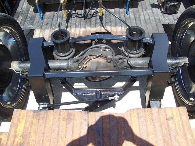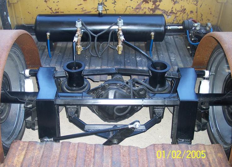 Porterbuilt DM, Air ride arms, spindles, mustng rack and pinion , unisteer adaption , 8 asco valves , 2 RE-7, 2RE-8 , 12 gallon tank , oasis compressor, Dakota DigitaGauges, two part drive shaft, and rear shocks