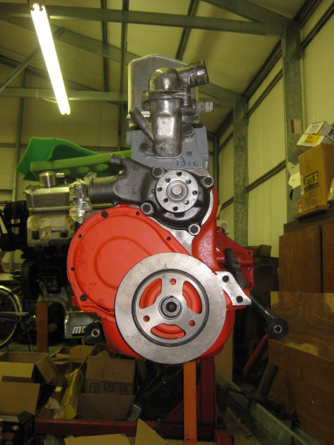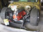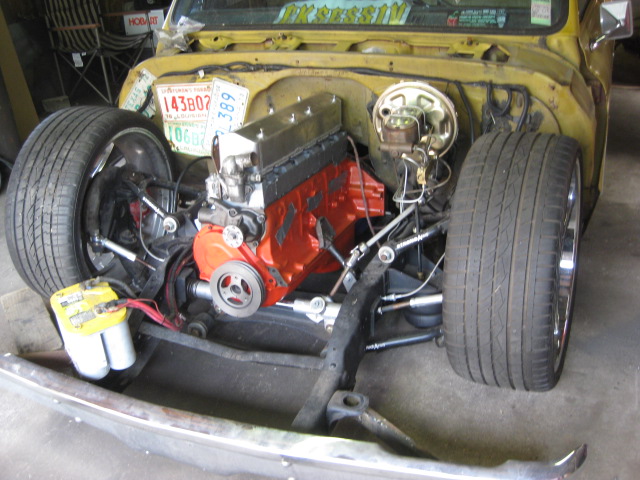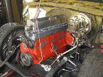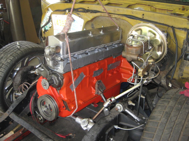250 straight 6 bored 60 over, 208 duration 518 cam, 1.940 intake and 1.600 exhaust with intake lumps installed, bolt in rocker arm studs, 1.75 comp cam rocker arms, header , intake , WEBER Carb , 10 to 1 compression, billet valve cover ,side sheilds , and a chrome alternator. All brakets have been powdercoated. Has a turbo 400 tranny.