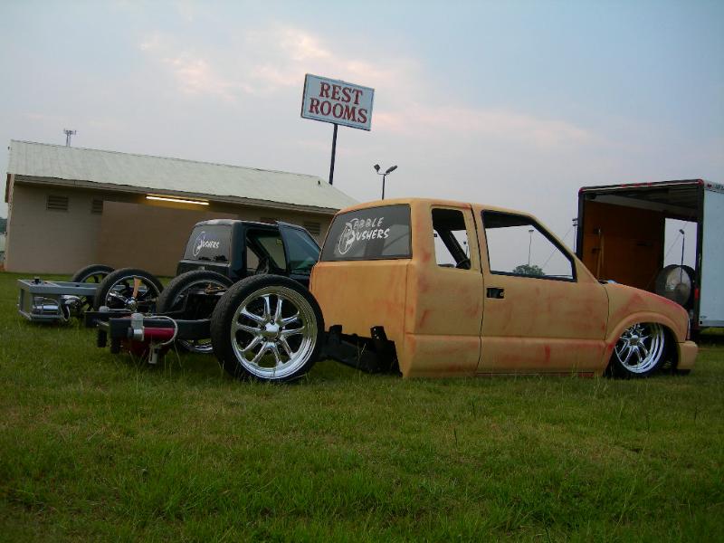 Thorbecke Wishbone 3-link, BYC upper and lower control arms, Belltech spindles. RE72 Slam Specialties at all 4 corners. 3/8 SMC valves.