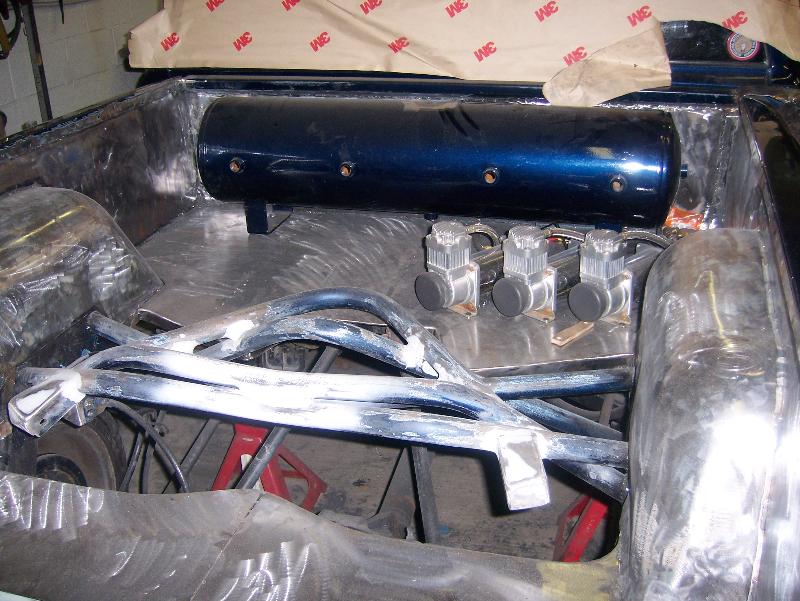 stock floor bodydrop 3.25, boxed frame,a.r.t. tubular control arms,connitech bags all around,kp components rear link setup,step notch,tubular bridge setup,parker valves,hydraulic lines used,12 gallon air tank,2 air zenith compressors,8 switches