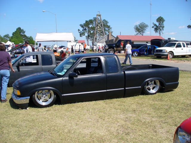Cadillac taillights, Smoothed bed, Shaved tailgate, Satin black paint, pinstripped, bodydropped, modified Mazda chrome bumper, paint, pinstripping and mazda bumper conversion done by Pat at Madd Concepts
