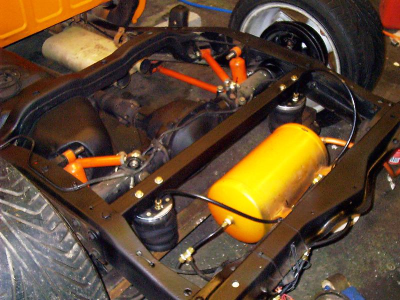 western chasie 2in drop spindles, AirLift 2b6's up fornt and airride tech bolt on 4link with firestone f9000 bags 4 smc 3/8 valves and a york compresser bolt in c-notch with a 5gal tank thanks to suicidedoors.com