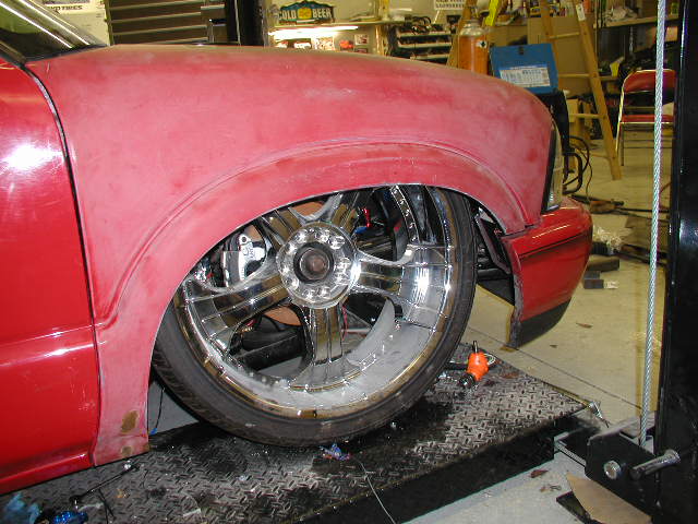 22's all around.... 22x9.5" zinik shoguns on right side and zinik blazer's on left side... 265/35/22 rubber front and 285/35/22 rubber in back