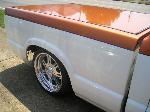 SOLD 6 INCHES TAKEN OUT OF EACH CORNER OF THE INSIDE OF BED TO MAKE BIGGER FENDERWELLS LOOK STOCK, SHAVED ANTENNA,DOOR HANDLES,THIRD BRAKE LIGHT,BED CORNERS, GAS DOOR, TAILIGHTS, TAILGATE HANDLE, WELDED ROLLPAN W/ LED TAILS, ENVOY BUMPER (WHITE, BLUE MICA, MANDARIAN COPPER METALIC)