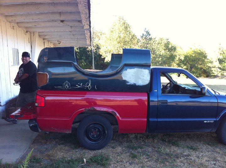 new 98+ stock front end, smooth sheetmetal dash, maybe a simple audio setup, spray on bed liner after fuel cell hole in the bed is covered, sliding rag, paint, pinstriping, full aftermath logo, live the dream...