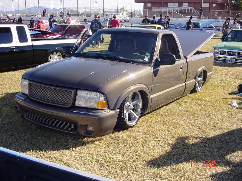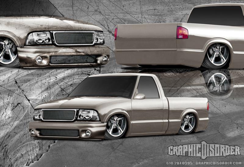 Shaved tailgate handle/third brake light/gas door/roll pan/antenna/Envoy front bumper/shaved door handles/suicide doors/full sheet metal bed/