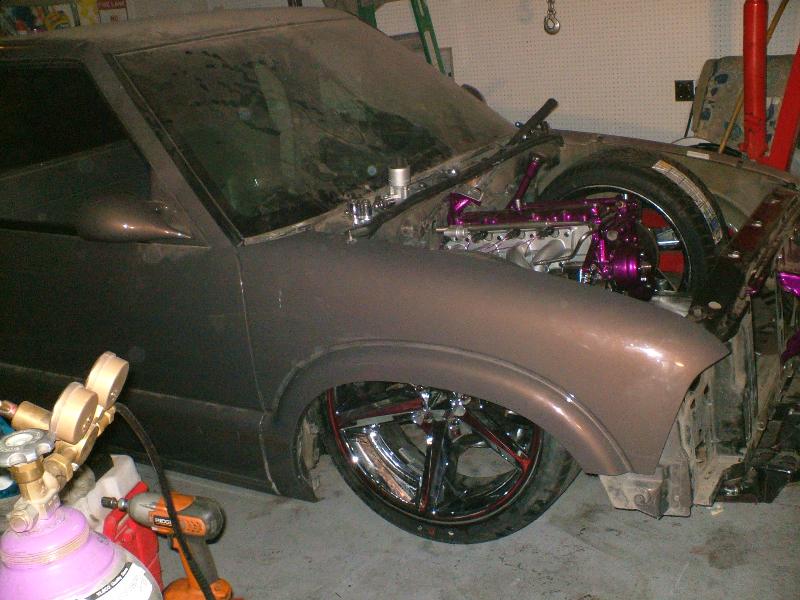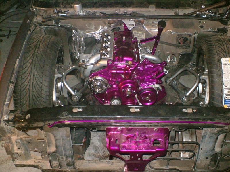 2.2 liter/Sunfire intake for stock hood/everything powder coated or painted/every nut and bolt is chromed/STS performance pullies/Screamn Demon coils and wires/ pace setter header/ tuff stuff chrome alternator