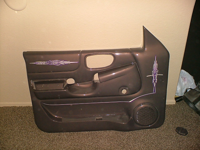 everything painted to match/suede and leather seats/suede headliner with pinstriping/suede visors by the interior shop/all painted pieces pinstriped by Rob Olin