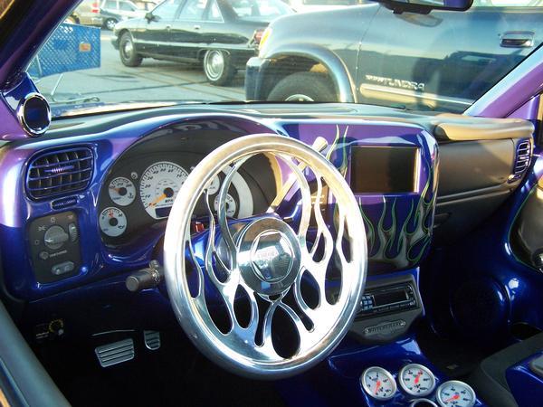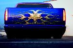 Blue with silver flames
