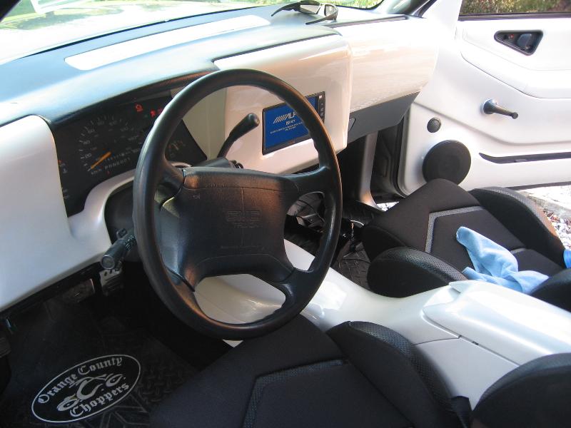 Glassed door panels & interior panels painted pearl white. 7" screen in-dash. Custom center console.
