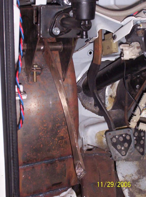 Clutch master cylinder reversed and relocated to inside of the cab and start of pedal