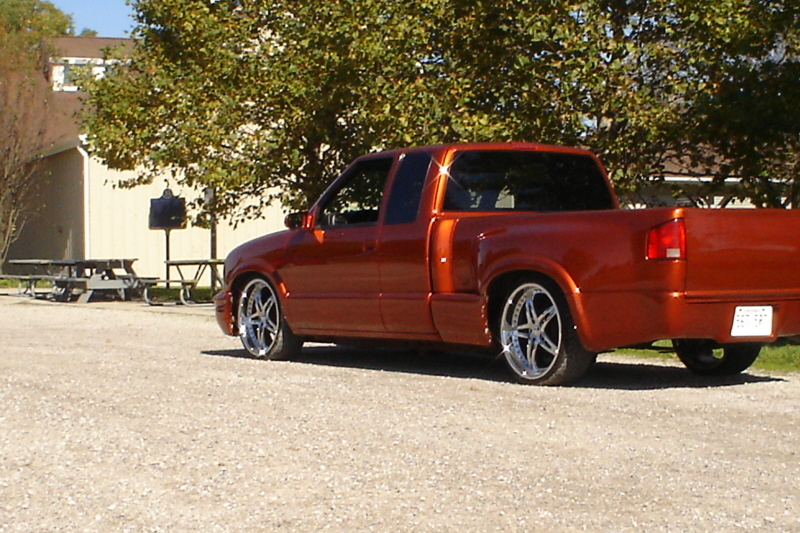 Shaved front and rear steps, roll pan shaved gate Envoy front end conversion, billet upper and lower grille and painted mopar GoManGo (colour of new daytona chargers)