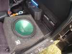 Glowing blue Panasonic AM/FM/CD head unit, 1 12" Infinity Kappa subwoofer powered by Lanzar 800W amp (pictured is a Crunch 200W. the 800 has been shorting out lately). also have Infinity Kappa 5 1/4" in the doors and tweeters located in pods on the windshield posts.