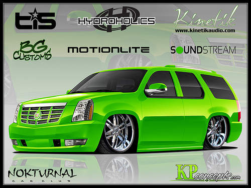 09 cadillac front end conversion, and back conversion, repainted house of kolor lime green with 6 ice pearls over