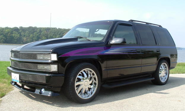 Custom graphics, full billet phantom grille, roll pan, smoked tails,clear corners, Stull Phantom bumper, and a Reflections Steel Cowl Induction Hood. Lite Glow neon kit.