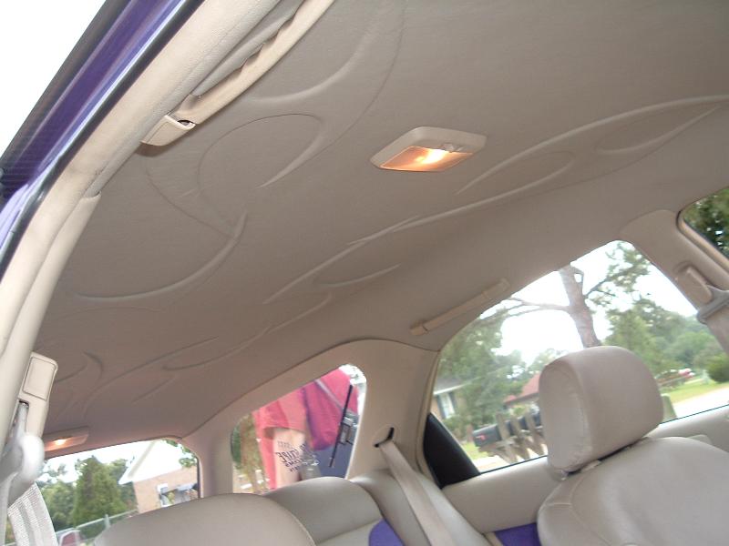 tan leather and purple tweed,headliner and dash