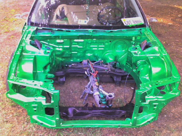 cans,2 480s,5 gal. tank.cut out fender wells and upper contol arms holes,shaved spindles.it lays cross member.front wheel tubs.