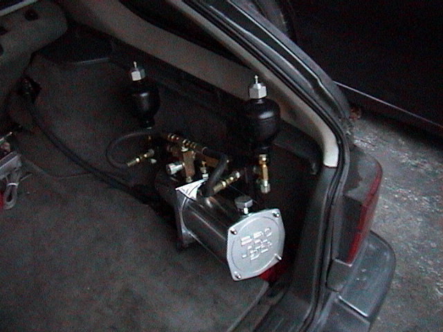 prohopper two pump setup with accumulators for a smooth ride. four optima blue tops in the spare wheelwell. used all parker fitting cause the ones that come in the kits suck.