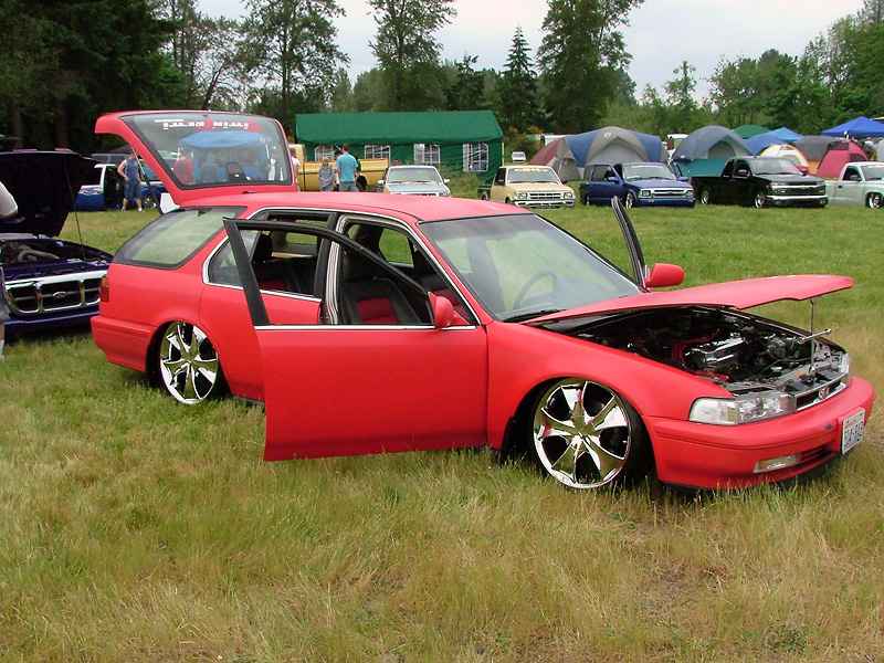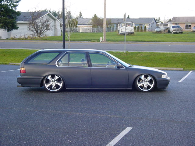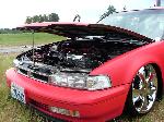 Custom mounts, shaved wishbone and cut strut tower for more drop.