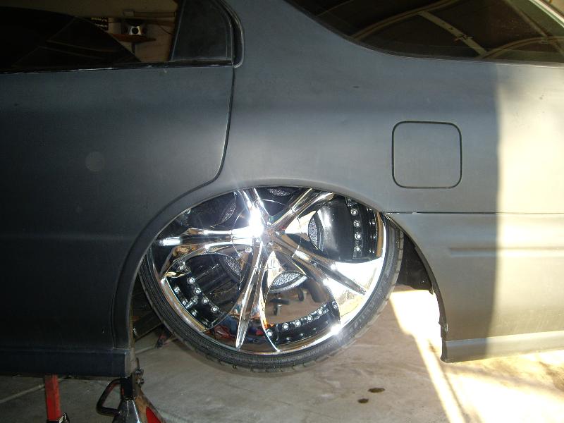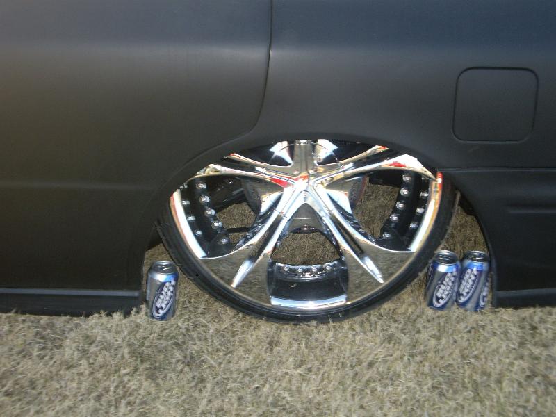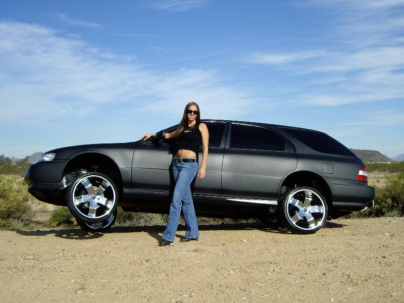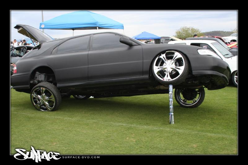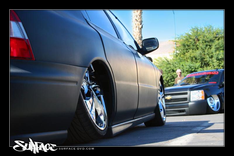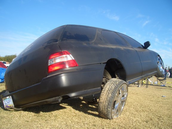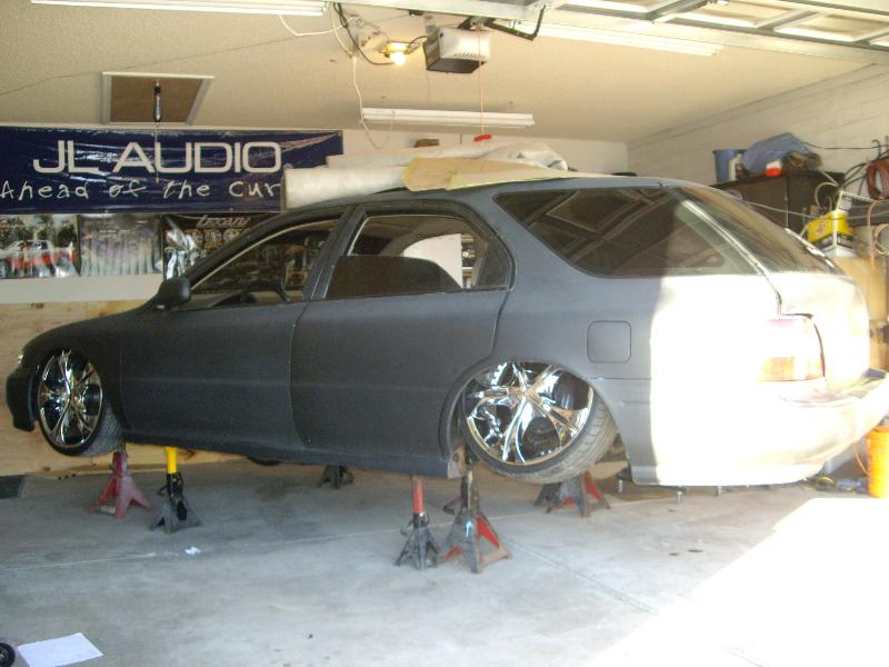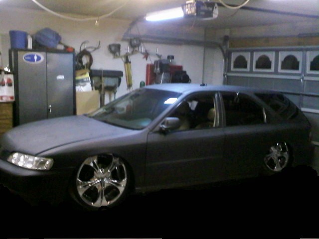 Black Satin primer,Shaved Everything but gas door, shaved door handles, hatch,hatch sqirter, antenna, side moldings, squirters, emblems, bumper body lines, marker lights on front bumper,1 piece crome projection head lights. upper Trendz billet grill, Trenz billet lower, Stainless Steel Elipital Elliptical tube licence plate bracket that I made, dark ass tint! just got a rear bumper step made out of polished billet from the interior shop.