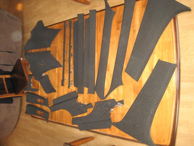 36 smoothed and painted color matched Frost white plastic pieces, Fiberglass glove box, Black leather shift boot/ E-brake, chrome shift knob, chrone E-Brake handle, Billet cigarette lighter. Black Tweed door panels, red glitter vinyl inserts! Lots of sparkly red and black...