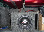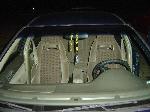 clarion head unit, clarion in-dash tv, dvd player in backseat cushion, rockford fosgate highs with a 500 watt sony amp pushing them, and 1 10" he2 with a 2000 watt sony amp pushing it.