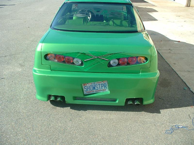 Painted by buster Hardee's Body Shop in North Carolina 252-752-1783 Kandy green w/ one off interga front end, supra tails,debadged,shaved everything, molded kit