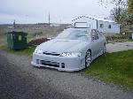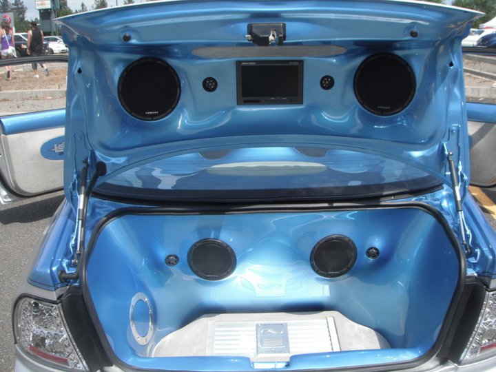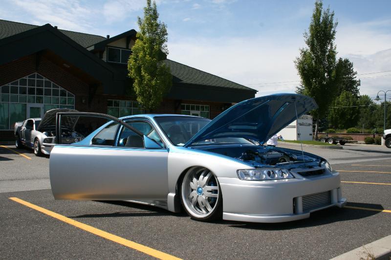 Black Widow 2 Kit and Hood, Shaved handles,gas door, body line, emblems, gutters, trunk lid,bumper.Electic blue bottom charger silver with satin clear.