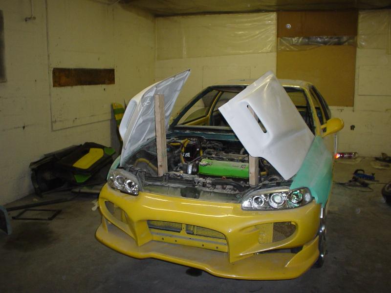 M-3 side mirros VIS invader front 03'civic Octane sides buddyclub rear feels widebody spit blackwidow 2 hood spoon wing shaved handals side molding antana tail lights liecens plate gas door and kustom molded rear widebody molded sideskirts rear bumper and widebody m-3